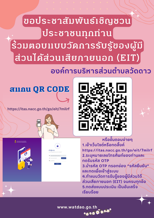 ประชาสัมพันธ์เชิญชวนประชาชนทุกท่านร่วมตอบแบบวัดการรับรู้ของผู้มีส่วนได้ส่วนเสียภายนอก EIT