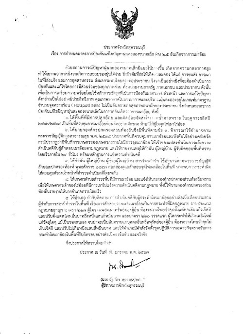 ประชาสัมพันธ์การกำหนดมาตรการการป้องกันแก้ไขปัญหาฝุ่นละอองขนาดเล็ก PM 2.5 อันเกิดจากการเผาอ้อย